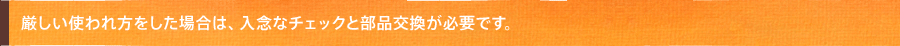 下記のような使用状況(シビアコンディション)にあてはまる場合は、通常よりもきめ細かい点検、早めの部品交換が必要です。詳しくは車屋・TAMでおたずねください。